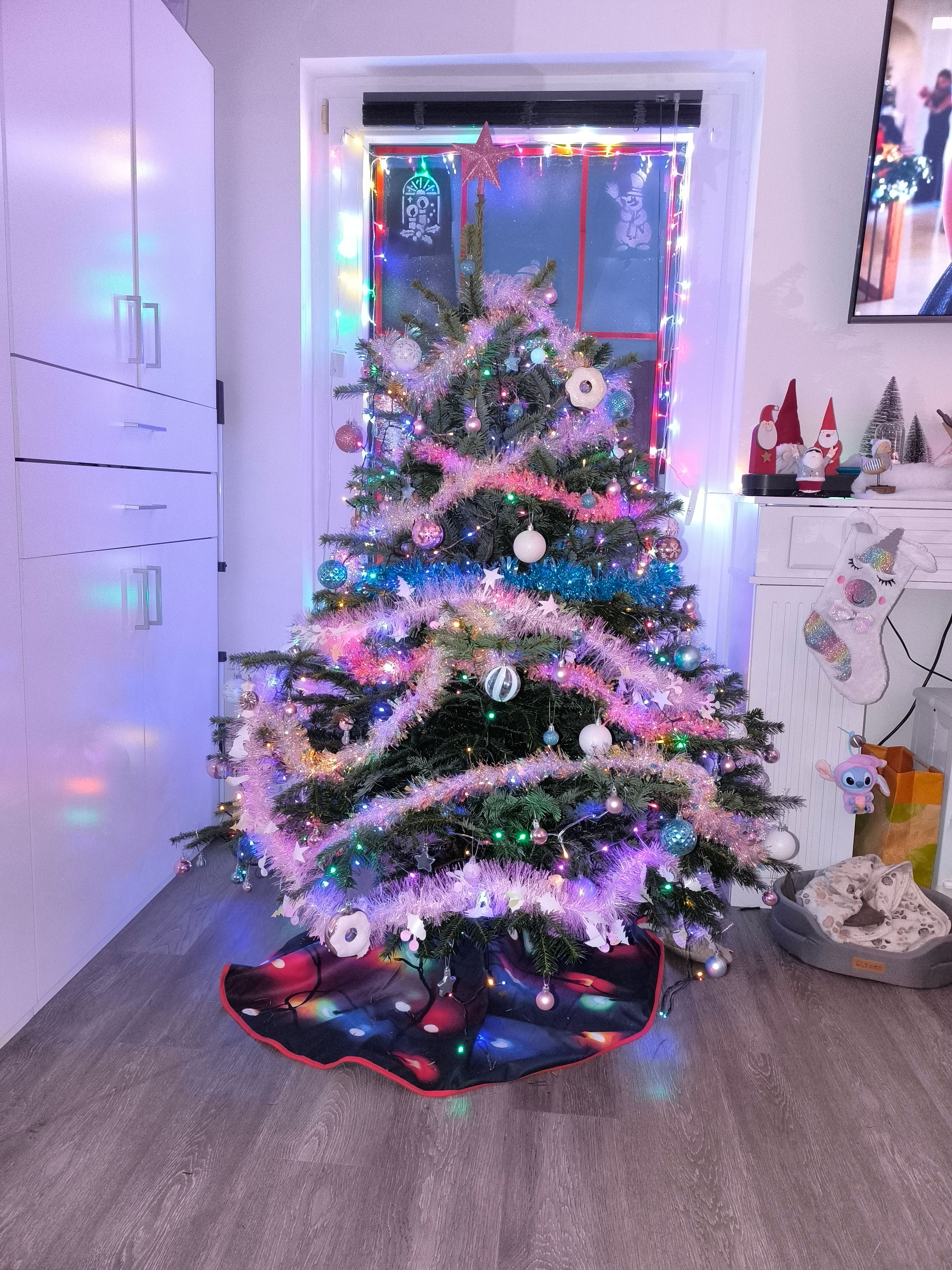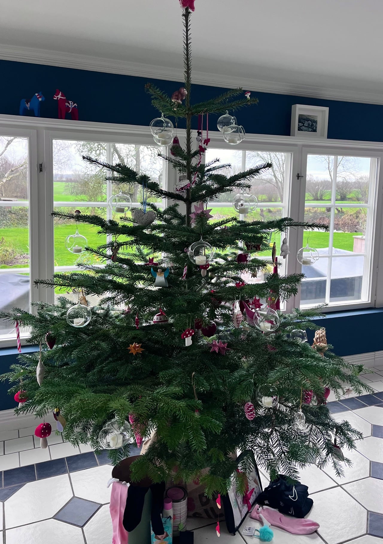 DANKE ... ihr habt unser Weihnachten letztes Jahr so viel schöner gemacht. Viele Jahre hatte ich keinen Weihnachtsbaum. Ich bin letztes Jahr umgezogen und lebe jetzt mit meinem Traummann auf einem alten Bauernhof mit 2 weiteren Familien. Damit alle was von eurem Baum haben, hatten wir uns entschlossen, ihn auf die überdachte Terrasse im Innenhof aufzustellen. Durch Corona gabs ja letztes Jahr leider keinen Weihnachtsmarkt. Wir haben uns deshalb hier ab und zu getroffen und draußen am Feuerkorb einen Glühwein oder heißen Kakao getrunken. Weihnachtsmusik kam aus dem Recorder und gebrannte Mandeln, Kekse und Flamkuchen haben die Stimmung des Mini-Weihnachtsmarktes noch abgerundet. Toll, euer Baum war so schön gewachsen. Viele haben ihn bewundert. Obs die Paketboten, die Postfrau oder Nachbarn waten, er kam überall gut an und wurde wegen seiner Frische und dem tollen Wuchs sehr bewundert. Er kam so frisch per Paketdienst, der Baum war mind. bis Ende Februar auf der Terrasse. Nach Weihnachten wurde er von den Kugeln befreit und es wurden Meisenknödel drangehängt. So hatten wir alle ( Mensch und Tier ) noch lange Freude an diesem tollen Baum.